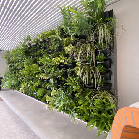 We were approached to add some green life to the outdoor living space of a new build. The space featured an outdoor heater and pizza oven but needed a living feature wall to break up the hard materials that made up the space. To complete this project a range of lush, jungle inspired plants were selected with a focus on fern species to help fill the space but to also introduce a range of textures. This vertical garden was designed to be low maintenance and is entirely self-irrigated.